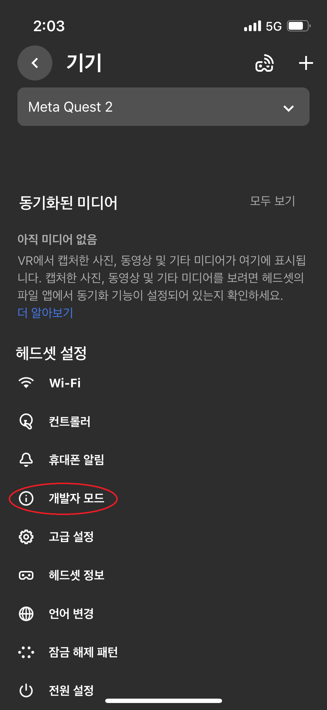 ์ด์ ์ฑ์์ ๊ฐ๋ฐ์ ๋ชจ๋๋ฅผ ์ค์ ํฉ๋๋ค. '๊ธฐ๊ธฐ' ๋ฉ๋ด์์ ๊ธฐ๊ธฐ๋ฅผ ์ฐ๊ฒฐํ๋ฉด 'ํค๋์
