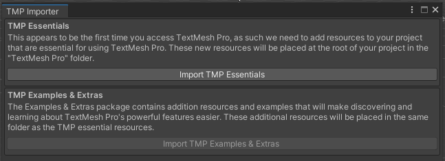 'Import TMP Examples & Extras'๋ ์ ํ ์ฌํญ์