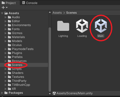 ๋จผ์ , Project ์ฐฝ์์ Assets > Scenes > Main ์ ํด๋ฆญํ์ฌ Main ์ฌ์ ์ฝ๋๋ค.