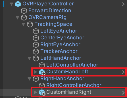 'LeftHandAnchor'๊ณผ 'RightHandAnchor'์ 'CustomHandLeft'์ 'CustomHandRight'๋ฅผ ์ถ๊ฐํด์ฃผ์ธ์.