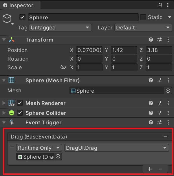 ์ด์ [Event Trigger - Add New Event Type - Drag]๋ฅผ ํด๋ฆญํฉ๋๋ค.