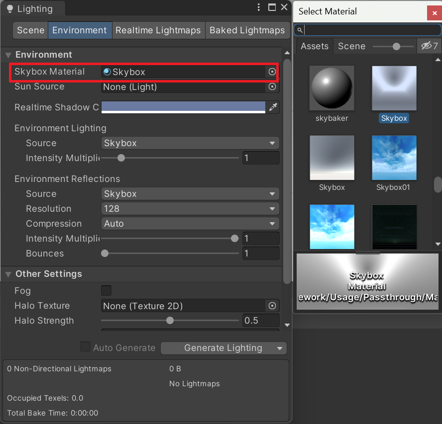 [Window - Rendering - Lighting - Environment] ์์ Skybox๋ฅผ ๋ฐ๊ฟ ์ ์์ต๋๋ค.