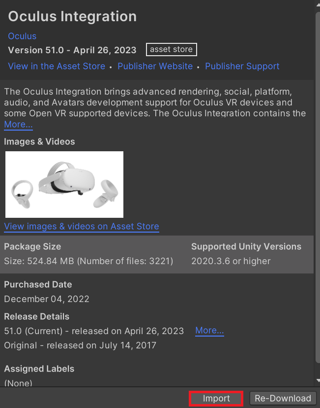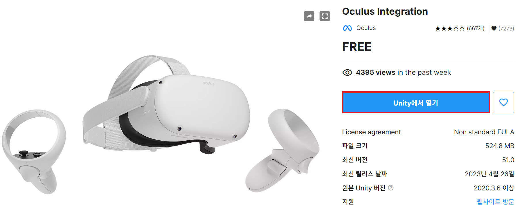 ์์ ์คํ ์ด์์ Oculus Integration ์์ ์ ์ถ๊ฐํฉ๋๋ค.