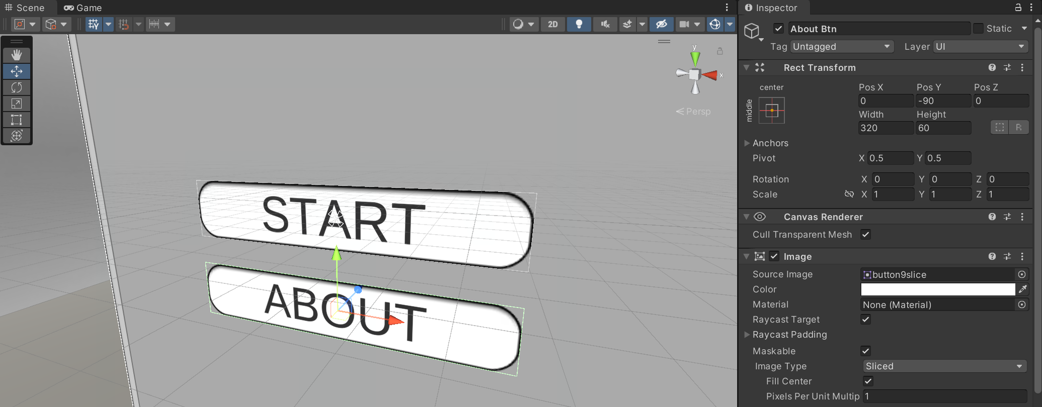 Start Btn์ ๋ณต์ ํด์ About Btn์ ๋ง๋ค์ด์ฃผ์ธ์.