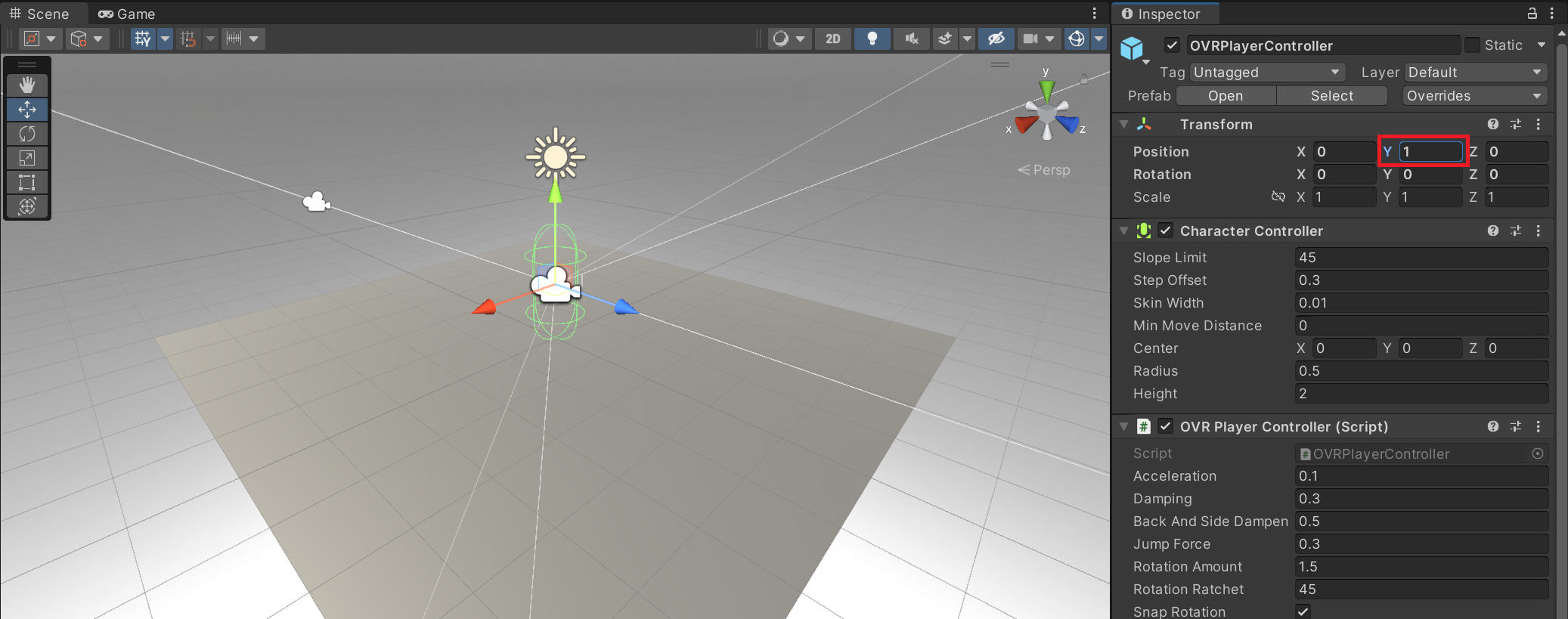 ํ๋ ์ด์ด๊ฐ ๋ฐ๋ฅ ์์ ์์ ์ ์๋๋ก OVRPlayerController์ Floor์ y๊ฐ์ ์กฐ์ ํด์ผ ํฉ๋๋ค.