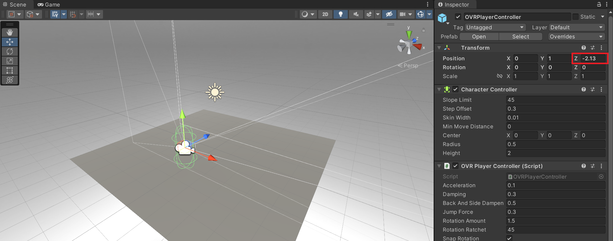Scene์ 'OVRPlayerController' Prefab์ ์ถ๊ฐํฉ๋๋ค.